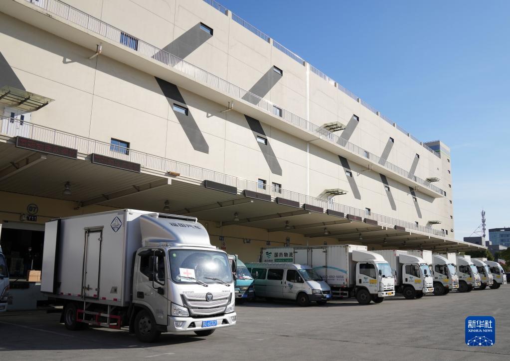 12月20日,藥品運輸車(chē)輛在國藥物流上海物流中心2號倉庫裝車(chē)。