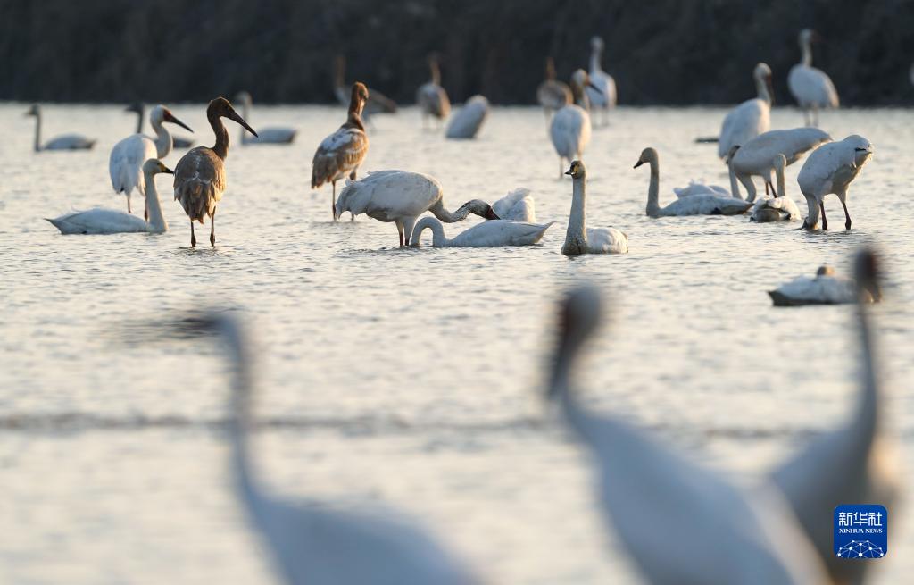 在鄱陽(yáng)湖畔的五星白鶴保護小區,成百上千只候鳥(niǎo)歡快地嬉戲覓食,享受著(zhù)鄱陽(yáng)湖畔的冬日暖陽(yáng)。鄱陽(yáng)湖今年遭遇持續干旱,為保護越冬候鳥(niǎo),愛(ài)鳥(niǎo)人士將候鳥(niǎo)常來(lái)的藕塘租下來(lái),擴建五星白鶴保護小區,周邊的稻田也只種不收,留給候鳥(niǎo)作食物……這一系列舉措保障了候鳥(niǎo)在此棲息越冬。