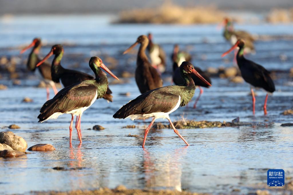 近日,近百只黑鸛飛抵河北省井陘縣綿蔓河一帶棲息越冬。黑鸛是世界瀕危珍禽,屬?lài)乙患壷攸c(diǎn)保護野生動(dòng)物,因數量稀少,被稱(chēng)為“鳥(niǎo)中大熊貓”。近年來(lái),井陘縣持續推進(jìn)生態(tài)環(huán)境治理,維護河湖生態(tài)平衡,吸引許多珍稀鳥(niǎo)類(lèi)前來(lái)棲息。