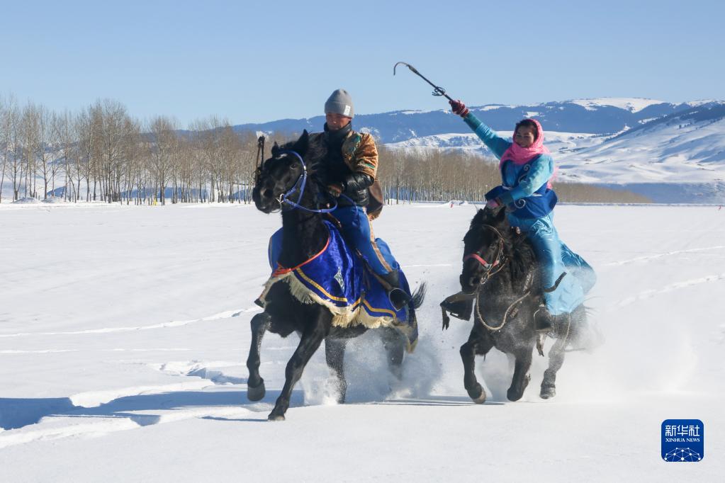 12月21日,新疆伊犁哈薩克自治州昭蘇縣薩爾闊布鄉農牧民舉行“姑娘追”活動(dòng),這是哈薩克族的傳統馬上體育運動(dòng)。入冬以來(lái),昭蘇縣各族農牧民開(kāi)展豐富多彩的民間文化體育活動(dòng),豐富冬閑時(shí)節生活。
