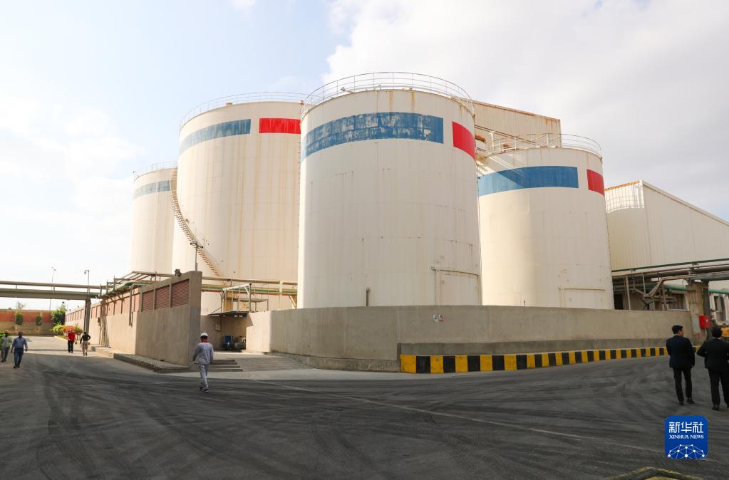 這是12月21日在埃及貝尼蘇韋夫省拍攝的安琪酵母(埃及)有限公司用于存儲生產(chǎn)酵母原料的罐子。