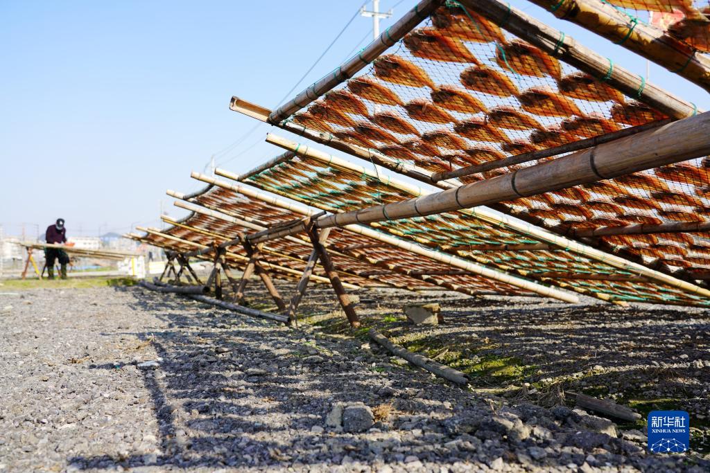 12月22日,浙江省樂(lè )清市天成街道萬(wàn)澤村的農戶(hù)在翻曬魚(yú)干。