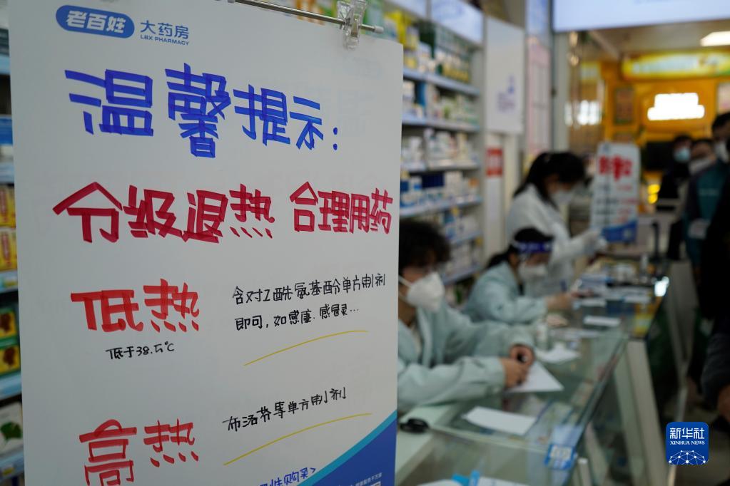 湖南省長(cháng)沙市一家藥店張貼海報提示市民分級退熱、合理用藥(12月22日攝)。新華社記者 余春生 攝