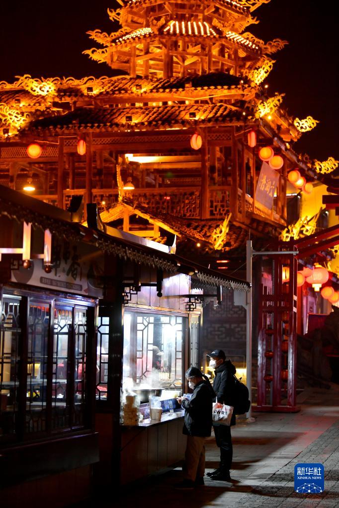 12月21日,在宣恩縣民族風(fēng)情街,市民在“地攤小屋”前購買(mǎi)食品。