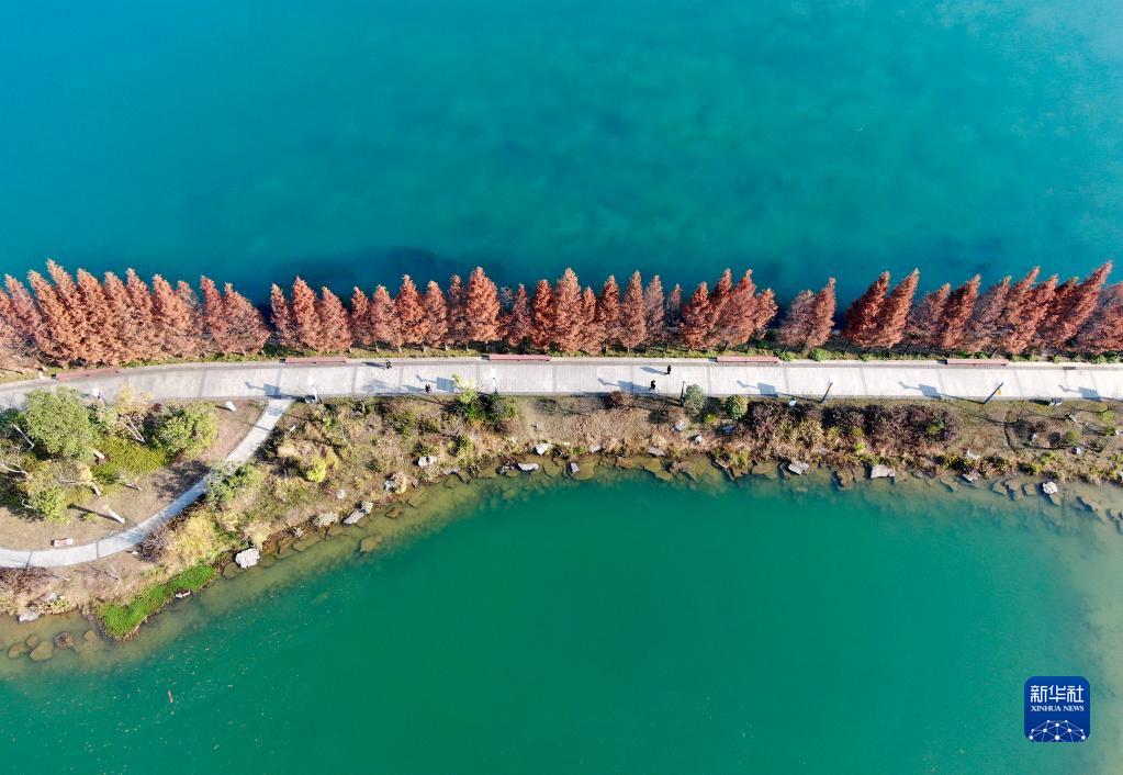近日,湖南省資興市東江灣城市公園的成片水杉樹(shù)色彩艷麗,景色如畫(huà),吸引市民前來(lái)游玩。