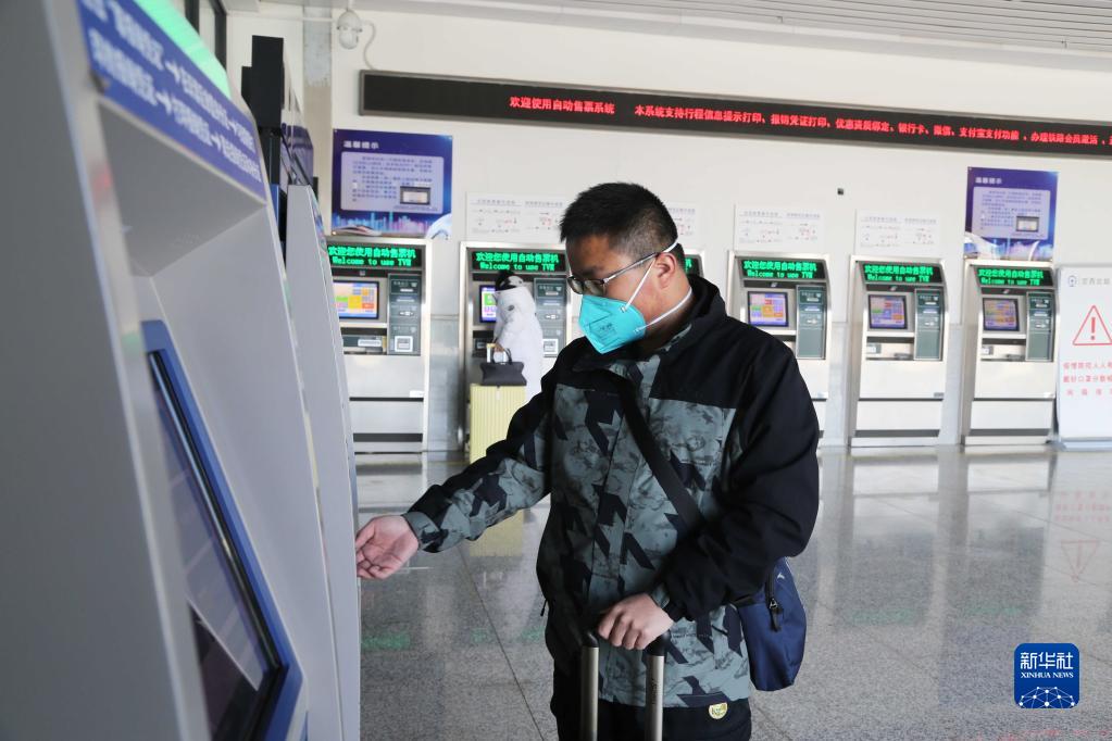 12月24日,旅客在寶蘭高鐵定西北站自助售票處辦理取票。