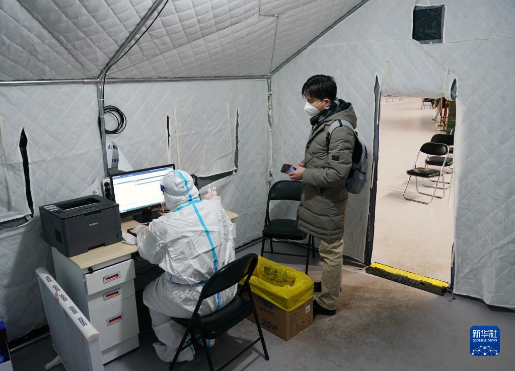 12月24日,醫生在北京市西城區廣安體育館簡(jiǎn)易發(fā)熱門(mén)診為前來(lái)就診的市民開(kāi)藥。
