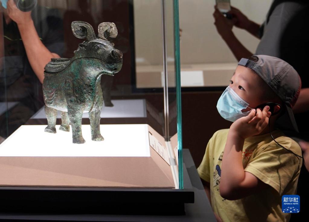2022年7月30日,小觀(guān)眾在上海博物館舉行的“宅茲中國——河南夏商周三代文明展”上參觀(guān)。
