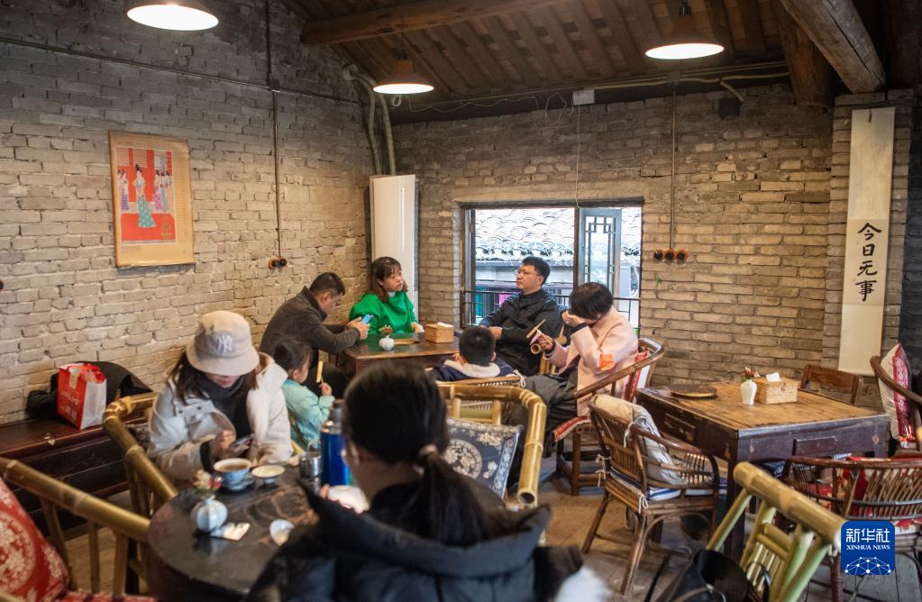 12月24日,市民游客在位于重慶解放碑商圈的著(zhù)名景點(diǎn)山城巷一家特色茶樓內聊天。