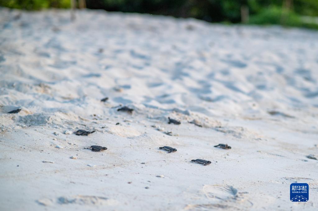 6月14日,在馬來(lái)西亞丁加奴州熱浪島北部査加爾瑚棠海龜保護區,小海龜們奔赴大海。