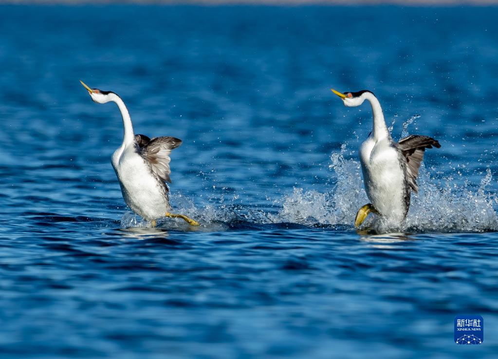 3月8日,在美國加州舊金山灣區圣何塞南部一個(gè)公園,??在水面起舞。