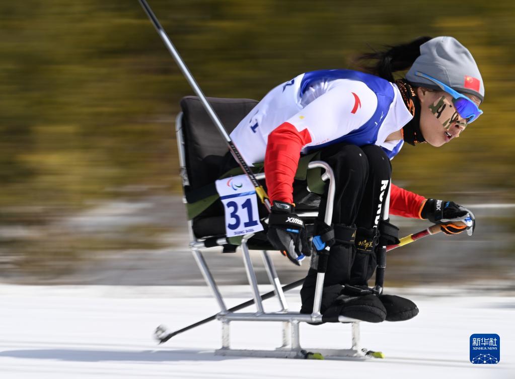 這是2022年3月6日,中國選手楊洪瓊在北京2022年冬殘奧會(huì )殘奧越野滑雪女子長(cháng)距離(坐姿)比賽中。