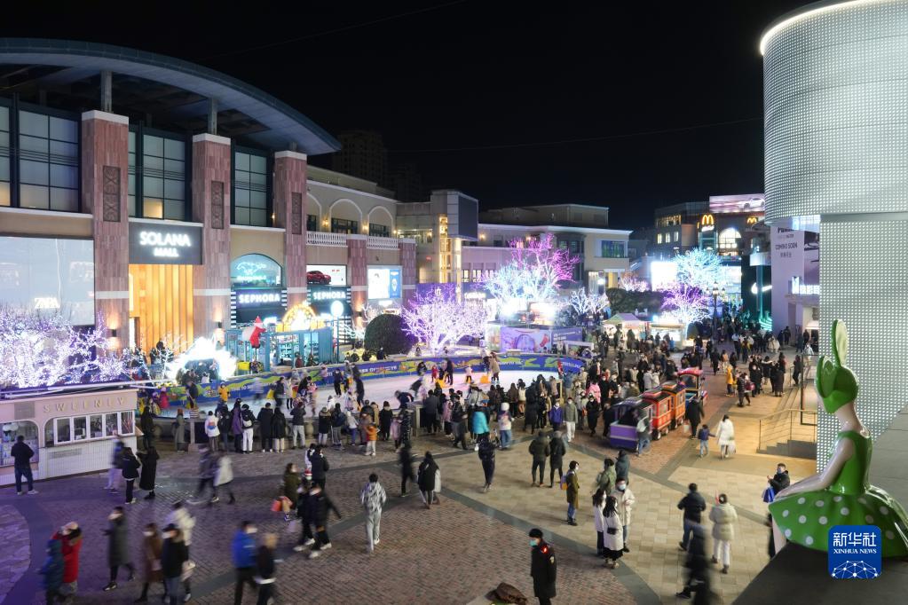市民在北京市朝陽(yáng)區藍色港灣購物中心購物休閑(12月24日攝)。