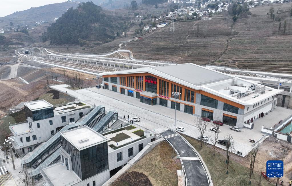12月20日拍攝的新成昆鐵路甘洛南站(無(wú)人機照片)。