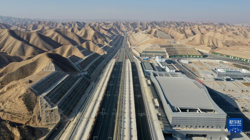 這是即將開(kāi)通運營(yíng)的銀蘭高鐵白銀南站(無(wú)人機照片,12月26日攝)。