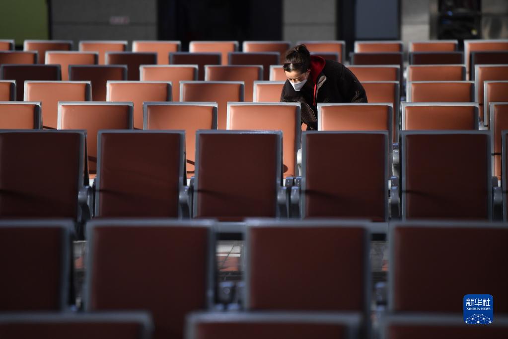 12月26日,工作人員在銀蘭高鐵秦王川站候車(chē)大廳進(jìn)行保潔。
