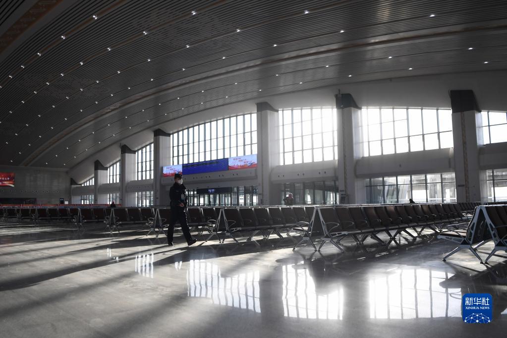 12月26日,蘭州鐵路公安處民警在即將開(kāi)通運營(yíng)的銀蘭高鐵秦王川站候車(chē)大廳內巡邏。