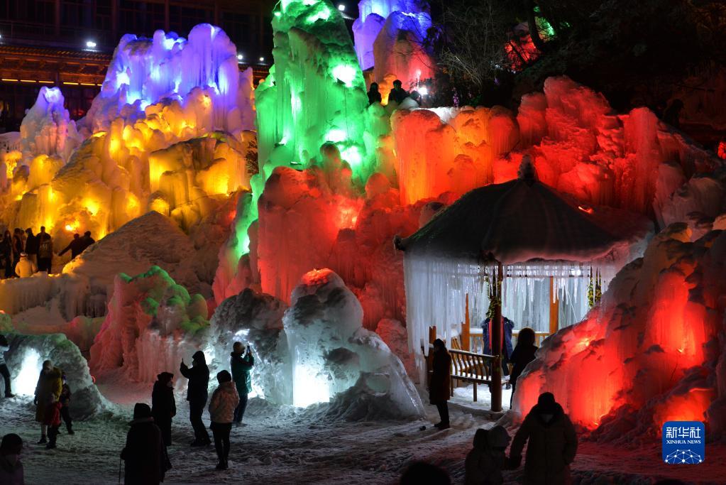 元旦將至,甘肅省積石山保安族東鄉族撒拉族自治縣大墩峽景區內的冰瀑、冰掛等景觀(guān)流光溢彩,夢(mèng)幻的冰雪世界吸引了八方賓客前來(lái)賞景游玩。