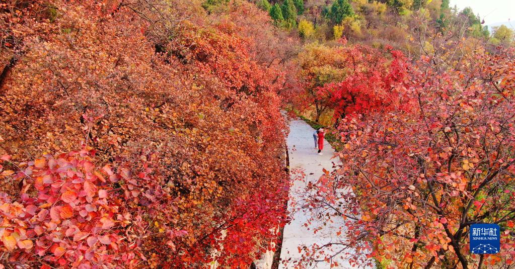 游客在山東省臨沂市沂南縣龍宿山上賞秋(2022年10月24日攝)。