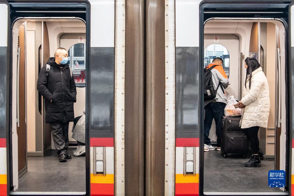 12月27日,在重慶北站G8612次成渝城際高鐵“復興號”智能動(dòng)車(chē)組車(chē)廂內,乘客等待發(fā)車(chē)。