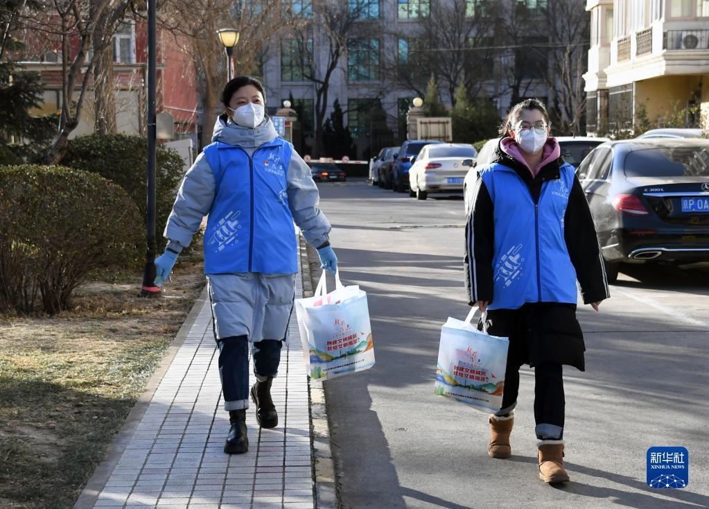 12月27日,在北京市海淀區羊坊店街道玉南路9號社區,社區工作人員為老人送“防疫愛(ài)心包”。