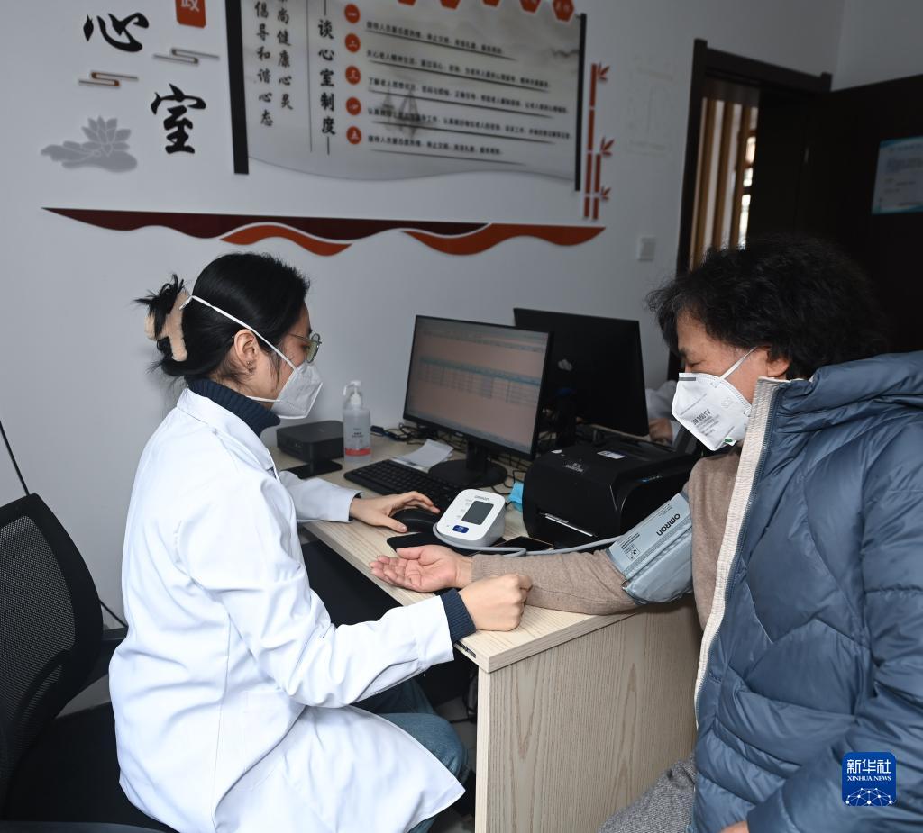 12月27日,在嘉善縣羅星街道永?;▓@巡回醫療點(diǎn),醫生為社區居民看病。
