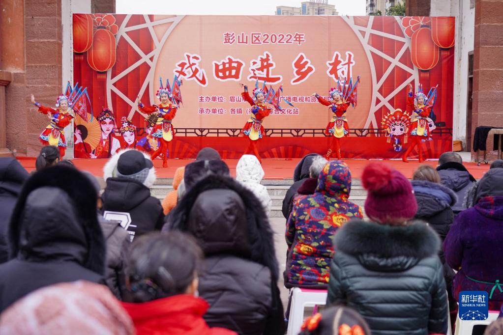 12月27日,在眉山市彭山區觀(guān)音街道龍門(mén)橋社區,演員為觀(guān)眾表演。