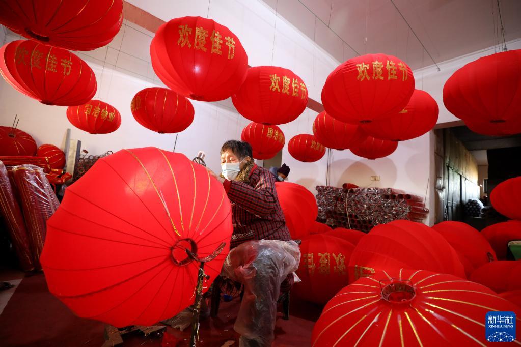 新年臨近,河南省焦作市溫縣北冷鄉許北張村燈籠作坊內一派忙碌景象,村民們加緊趕制大紅燈籠,供應節日市場(chǎng)。