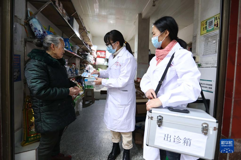 12月28日,在赤水市石堡鄉朝陽(yáng)社區,醫護人員上門(mén)為群眾發(fā)放藥品。