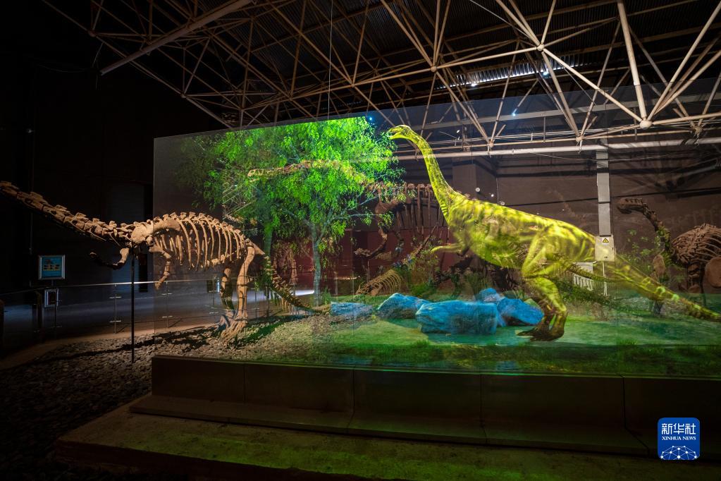 這是12月28日在中國祿豐恐龍大遺址館拍攝的通過(guò)數字技術(shù)還原的恐龍形象。