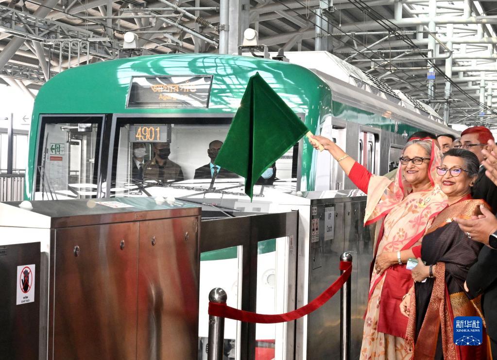 12月28日,在孟加拉國首都達卡,孟加拉國總理哈西娜(右二)出席該國首條輕軌開(kāi)通儀式。