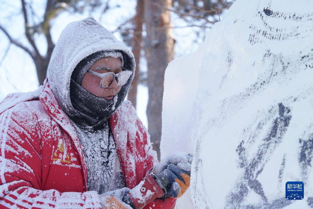 12月29日,參賽選手在進(jìn)行冰雕創(chuàng )作。