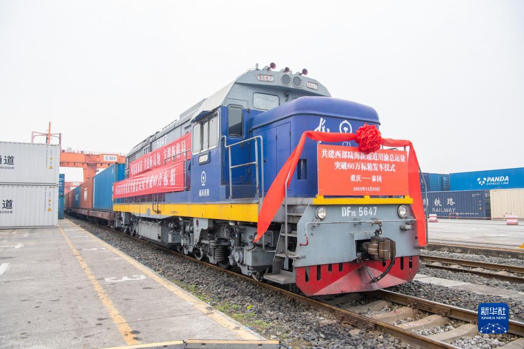 當日,兩列西部陸海新通道鐵海聯(lián)運班列分別從成都國際鐵路港和重慶團結村中心站發(fā)出,將經(jīng)廣西欽州港分別到達馬來(lái)西亞和泰國。本次班列發(fā)運,標志著(zhù)西部陸海新通道川渝總運量突破60萬(wàn)標箱。