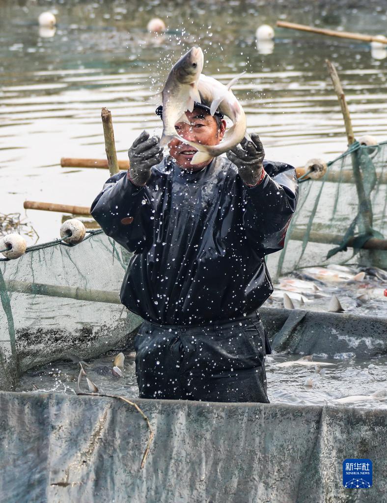 12月30日,江蘇淮安市淮安區流均鎮養殖戶(hù)在魚(yú)塘冬捕。新華社發(fā)(趙啟瑞 攝)