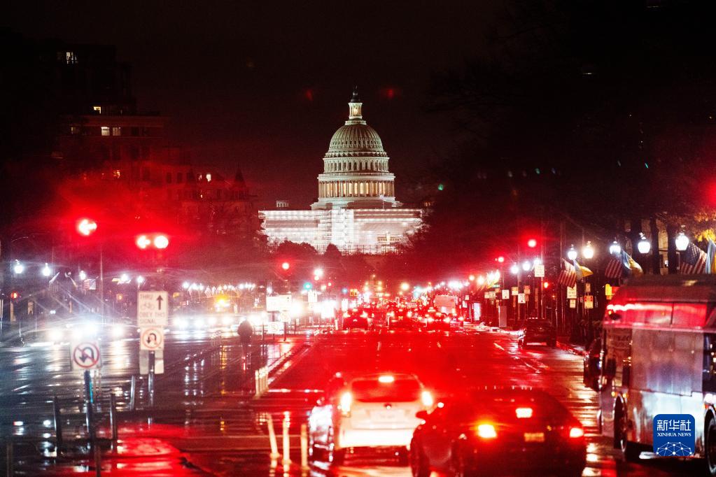 這是12月22日在美國華盛頓拍攝的雨中的車(chē)輛和國會(huì )大廈。