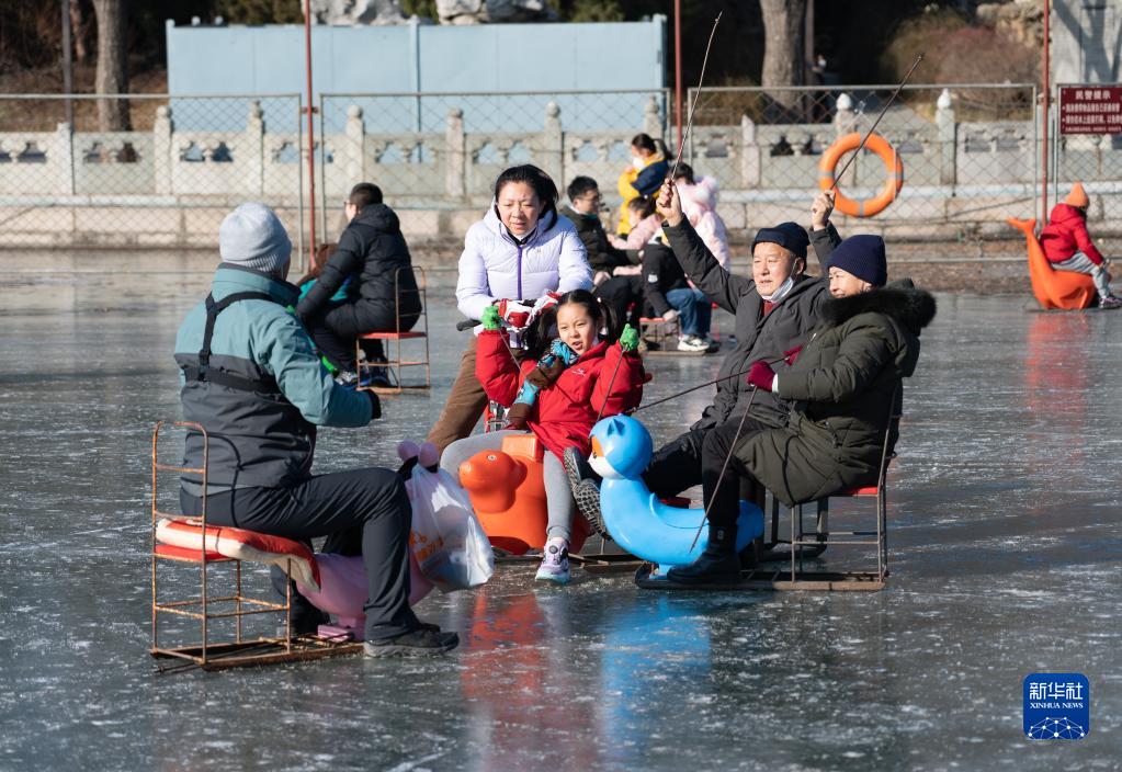 12月31日,游客們在北京北海公園冰場(chǎng)玩耍。