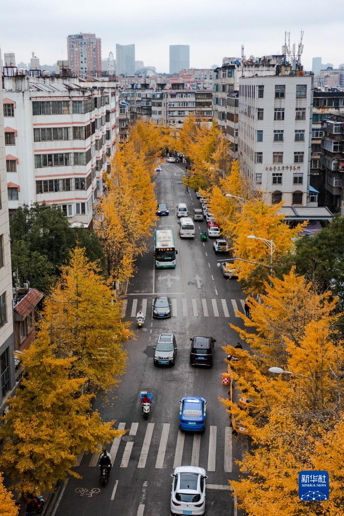 近日,云南省昆明市文林街街道兩側的銀杏進(jìn)入最佳觀(guān)賞期,金黃色的樹(shù)葉掛滿(mǎn)枝頭,吸引游客前來(lái)觀(guān)賞。