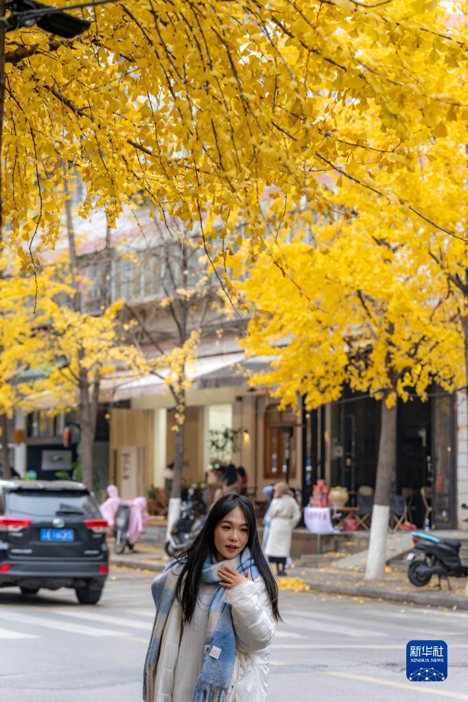 近日,云南省昆明市文林街街道兩側的銀杏進(jìn)入最佳觀(guān)賞期,金黃色的樹(shù)葉掛滿(mǎn)枝頭,吸引游客前來(lái)觀(guān)賞。
