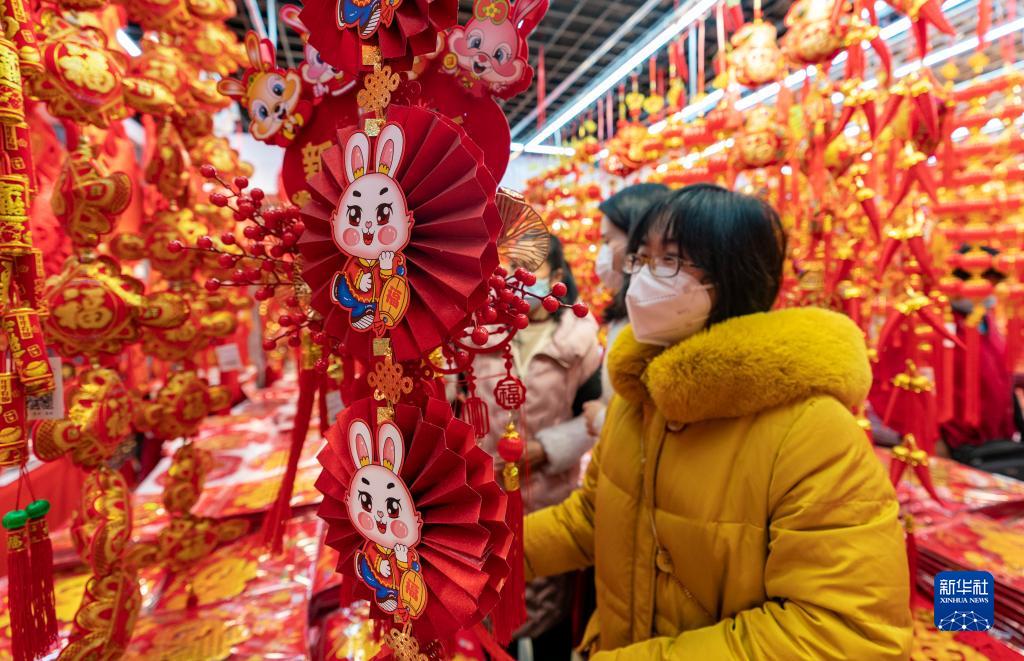 近期,位于云南省昆明市的新螺螄灣國際商貿城內節日飾品購銷(xiāo)兩旺,紅燈籠、春聯(lián)、兔年生肖飾品等銷(xiāo)售逐漸升溫。