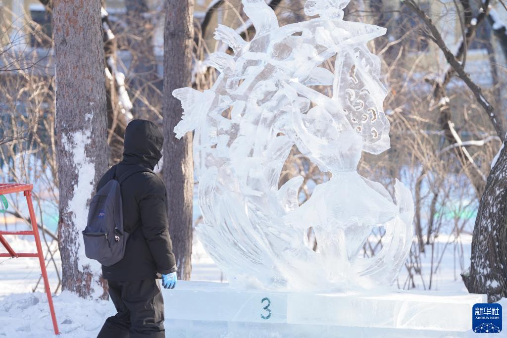 12月31日拍攝的獲得設計類(lèi)銀獎的冰雕作品《舞動(dòng)冰雪》。