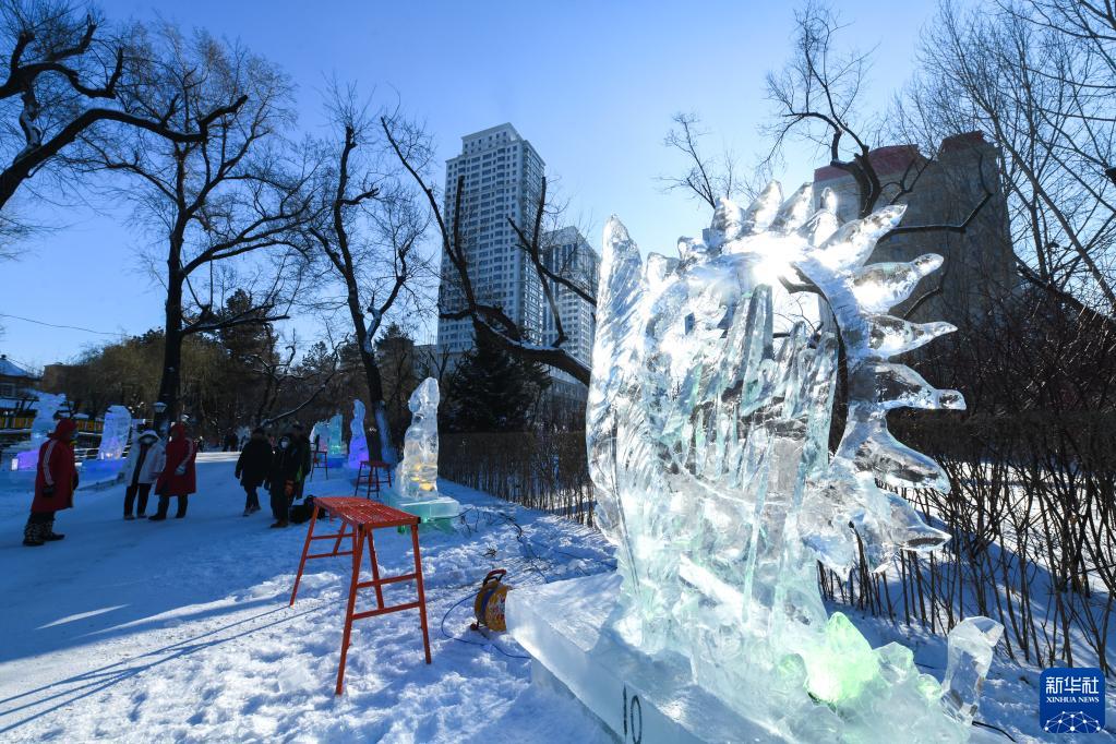 12月31日拍攝的獲得制作類(lèi)金獎的冰雕作品《羽,焰》。