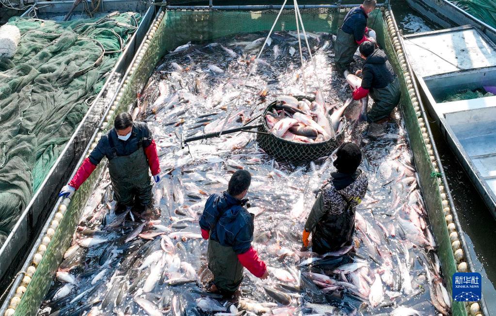新年臨近,江蘇省泰州市姜堰區溱湖6000多畝水域進(jìn)入冬季捕魚(yú)季,漁民們抓緊捕撈供應節日市場(chǎng)。