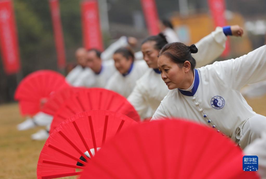 1月1日,太極愛(ài)好者在湖南張家界國家森林公園大氧吧廣場(chǎng)進(jìn)行太極展演,在新年第一天享受健身樂(lè )趣。