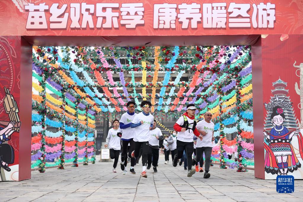 1月1日,跑步愛(ài)好者在貴州省黔東南苗族侗族自治州丹寨縣萬(wàn)達小鎮參加迎新年健康跑活動(dòng)。
