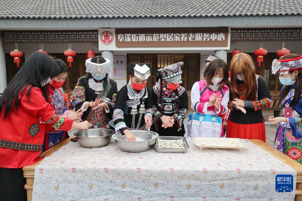 1月1日,在浙江省湖州市德清縣阜溪街道興山社區居家養老服務(wù)中心,少數民族群眾在做湯圓。