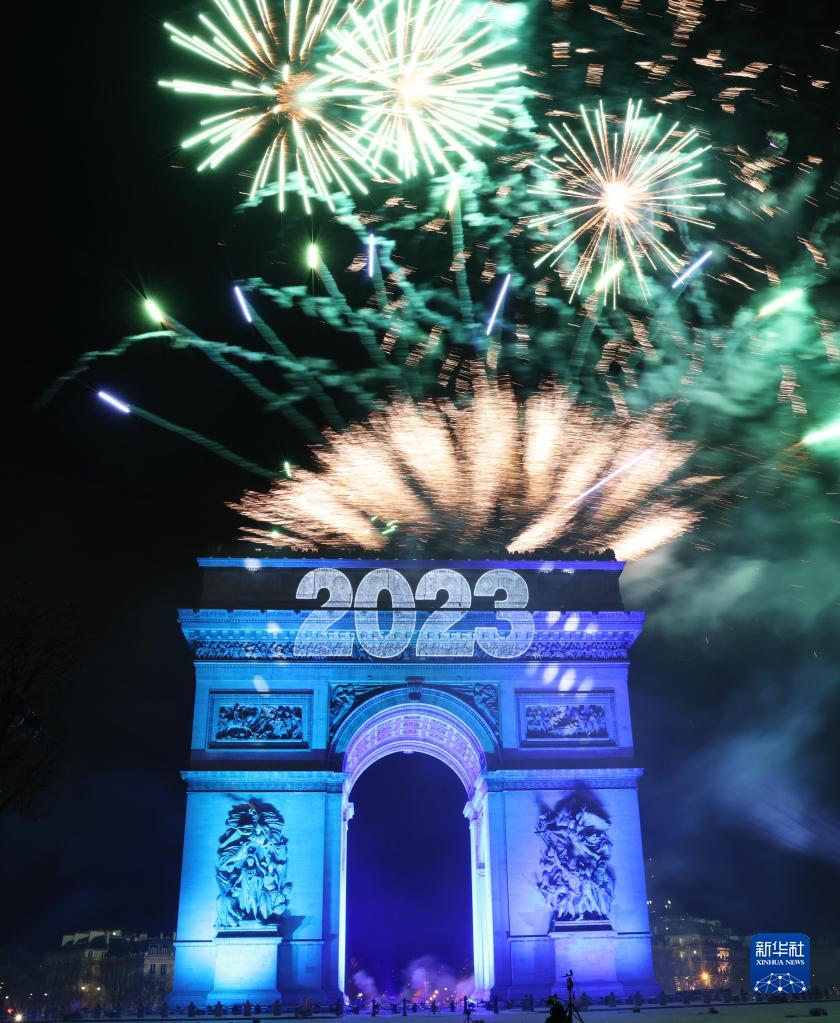 這是2023年1月1日在法國巴黎凱旋門(mén)拍攝的新年焰火。