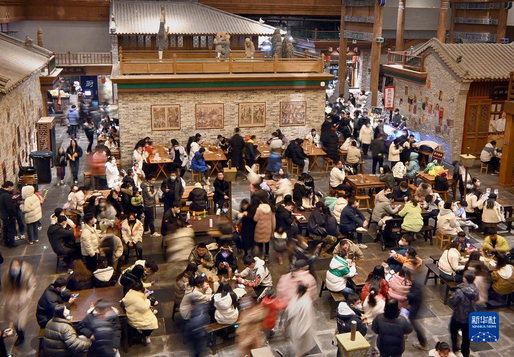 游客在位于鄭州市中牟縣的電影小鎮餐廳就餐(2022年12月31日攝)。