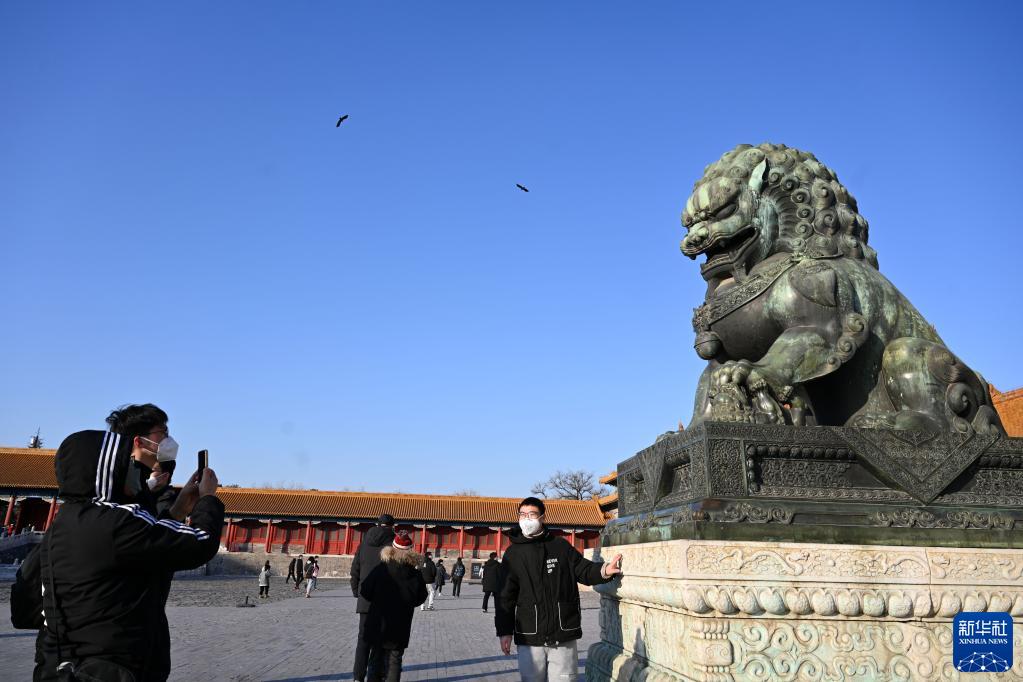 1月1日,游客在故宮太和門(mén)廣場(chǎng)參觀(guān)。