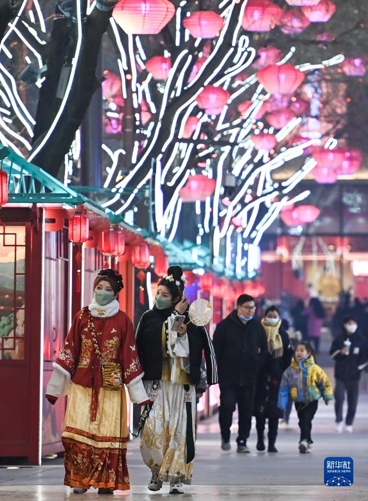 2022年12月30日,游客在大唐不夜城步行街游玩。