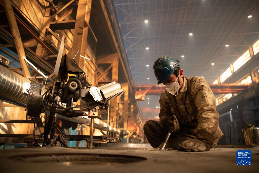 1月1日,在哈電集團哈爾濱電機廠(chǎng)有限責任公司生產(chǎn)車(chē)間,工人在生產(chǎn)作業(yè)。